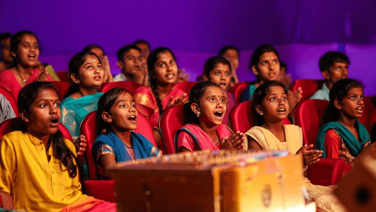 Last weekend a photo from a south Mumbai auditorium landed in my inbox: a violet-lit stage, a harmonium at center, and an audience far younger than the usual satsang crowd, singing along to live devotional music. The picture captures more than a moment — it points to a quiet cultural shift unfolding across Indian cities.